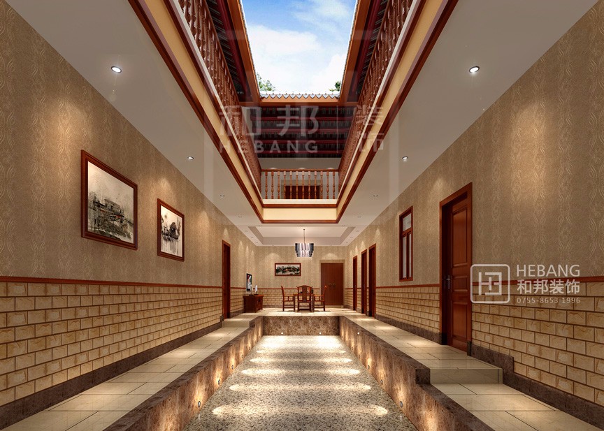 梅州客家大宅在設(shè)計時秉承了傳統(tǒng)客家建筑裝修的傳統(tǒng),十分注重風(fēng)水和采光在空間中的合理安排。