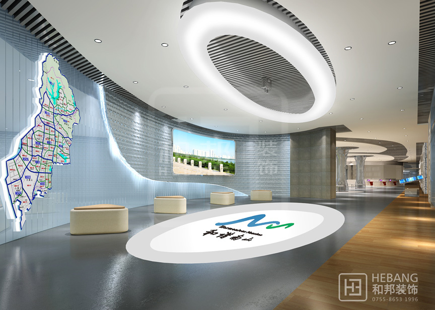本案位于南山區愛心大廈2樓。圍繞區委決策,以建設“一平臺兩中心”為基礎,實現四項功能。打造現代化南山區社會建設服務大廳,積極推動并全面展示全區社會建設情況。