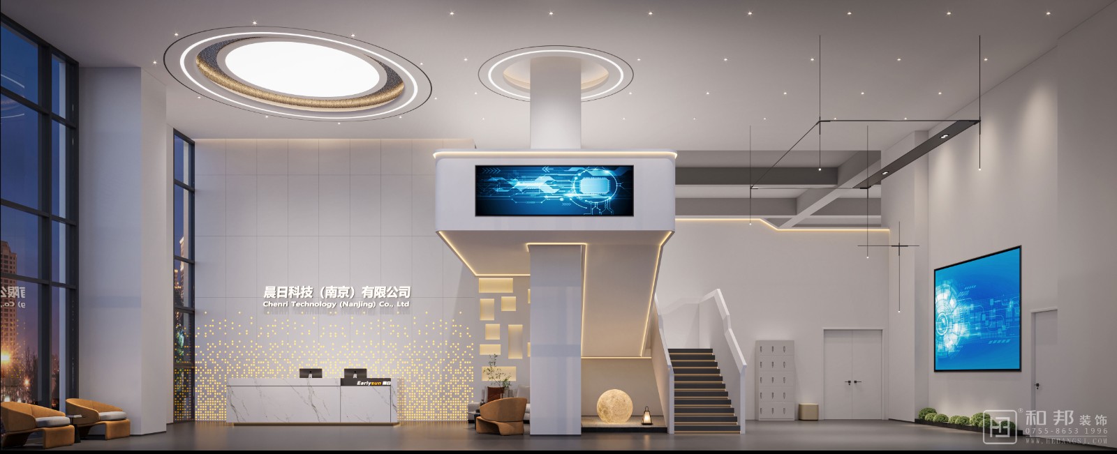 | 設(shè)計說明 | 本案以 “宇宙探索” 為脈絡(luò),頂面圓環(huán)似恒星散發(fā)能量,接待區(qū)星光點飾如宇宙塵埃。樓梯旁球形燈模擬月球,呼應(yīng) “晨日” 之名,將科技公司與日月星辰關(guān)聯(lián),營造充滿想象力的宇宙探索氛圍,讓空間成為連接現(xiàn)實與宇宙遐想的載體 。 | ||||