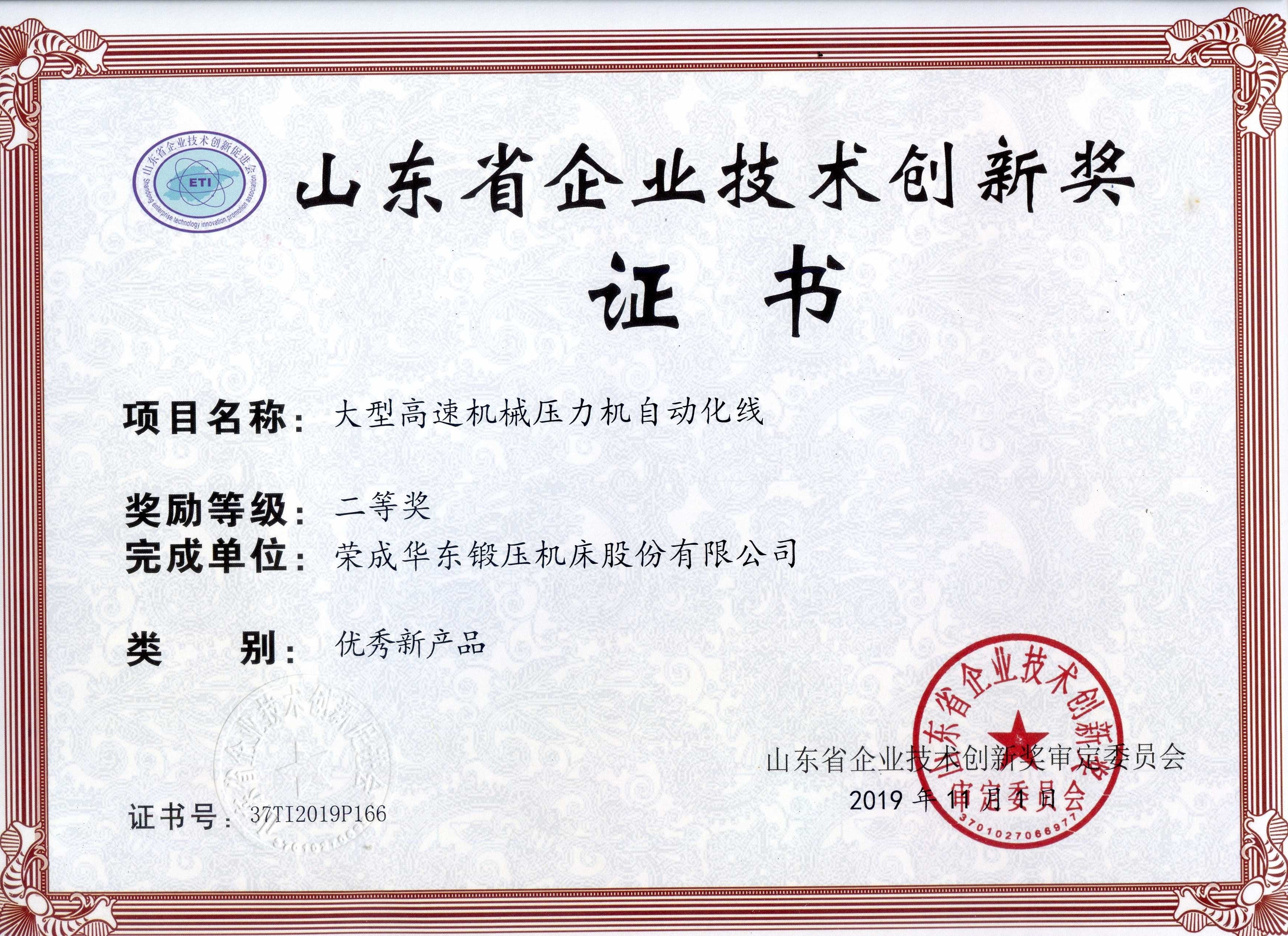 山東省企業(yè)技術(shù)創(chuàng)新獎(jiǎng)-乘用車(chē)輪輻閉式單點(diǎn)壓力機(jī)生產(chǎn)線(xiàn)
