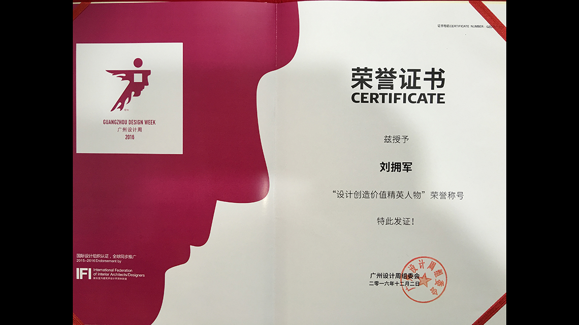 廣州設(shè)計(jì)周:我司總經(jīng)理兼首席設(shè)計(jì)總監(jiān)劉擁軍在廣州設(shè)計(jì)周上發(fā)表了《設(shè)計(jì)驅(qū)動(dòng)生產(chǎn)力》的精彩演講,在此期間設(shè)計(jì)總監(jiān)劉擁軍、吳新奮、劉作平三人一并榮獲【設(shè)計(jì)創(chuàng)造價(jià)值精英人物】榮譽(yù)稱(chēng)號(hào)!